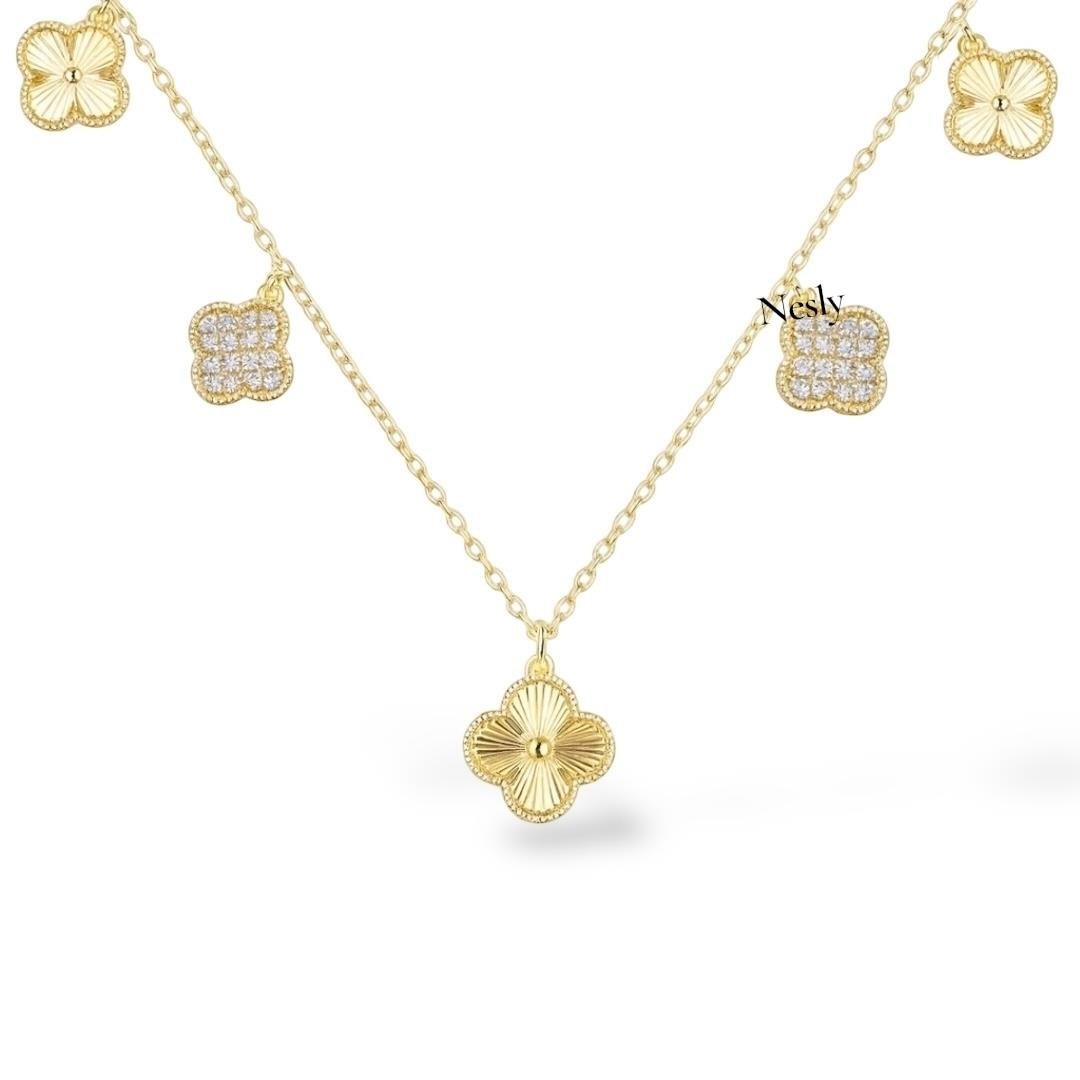 14k Gold 2 Motif Taşlı 5 Motif Yonca Kolye