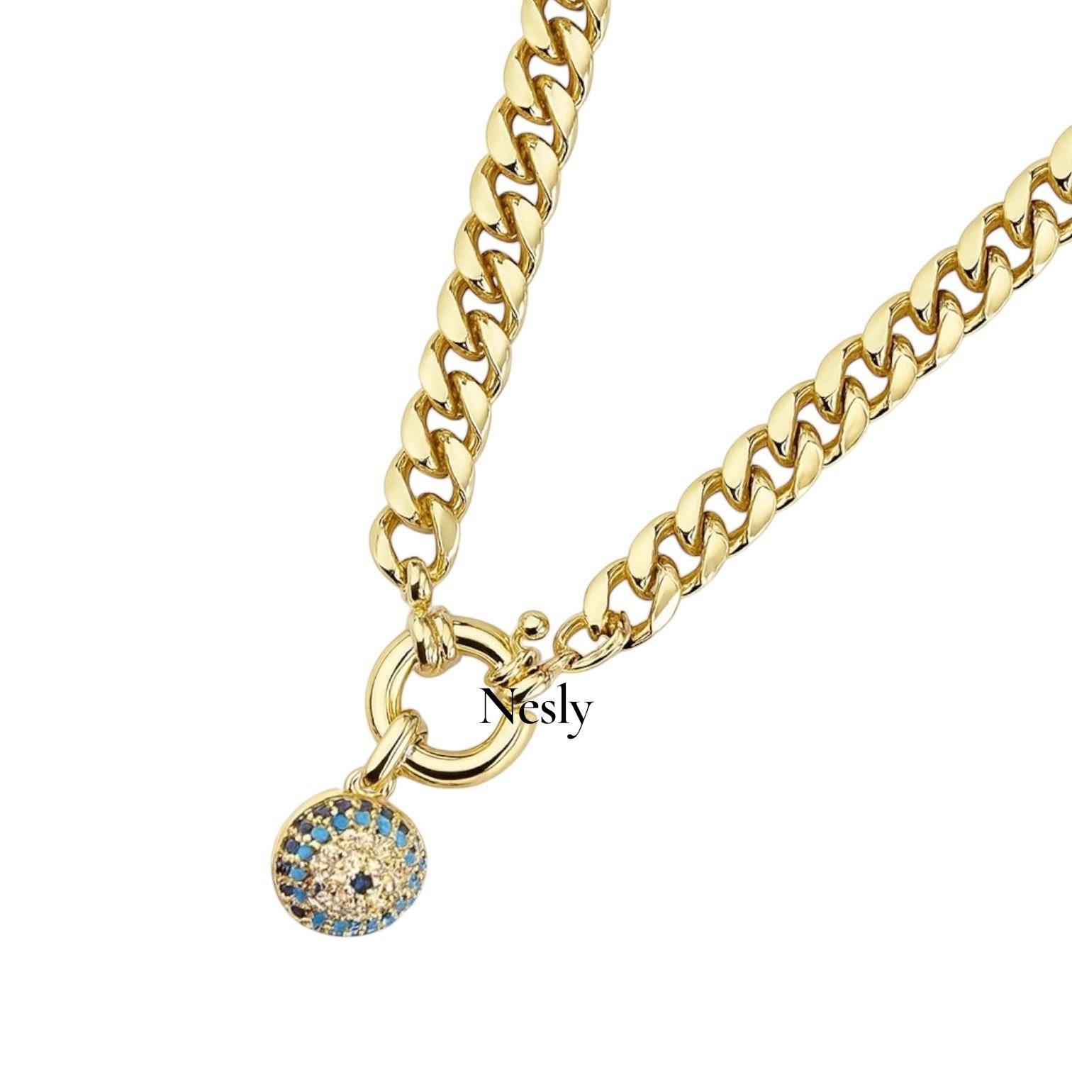 14k Gold Gemici Kilit Nazar Boncuklu Gurmet Zincir Kolye