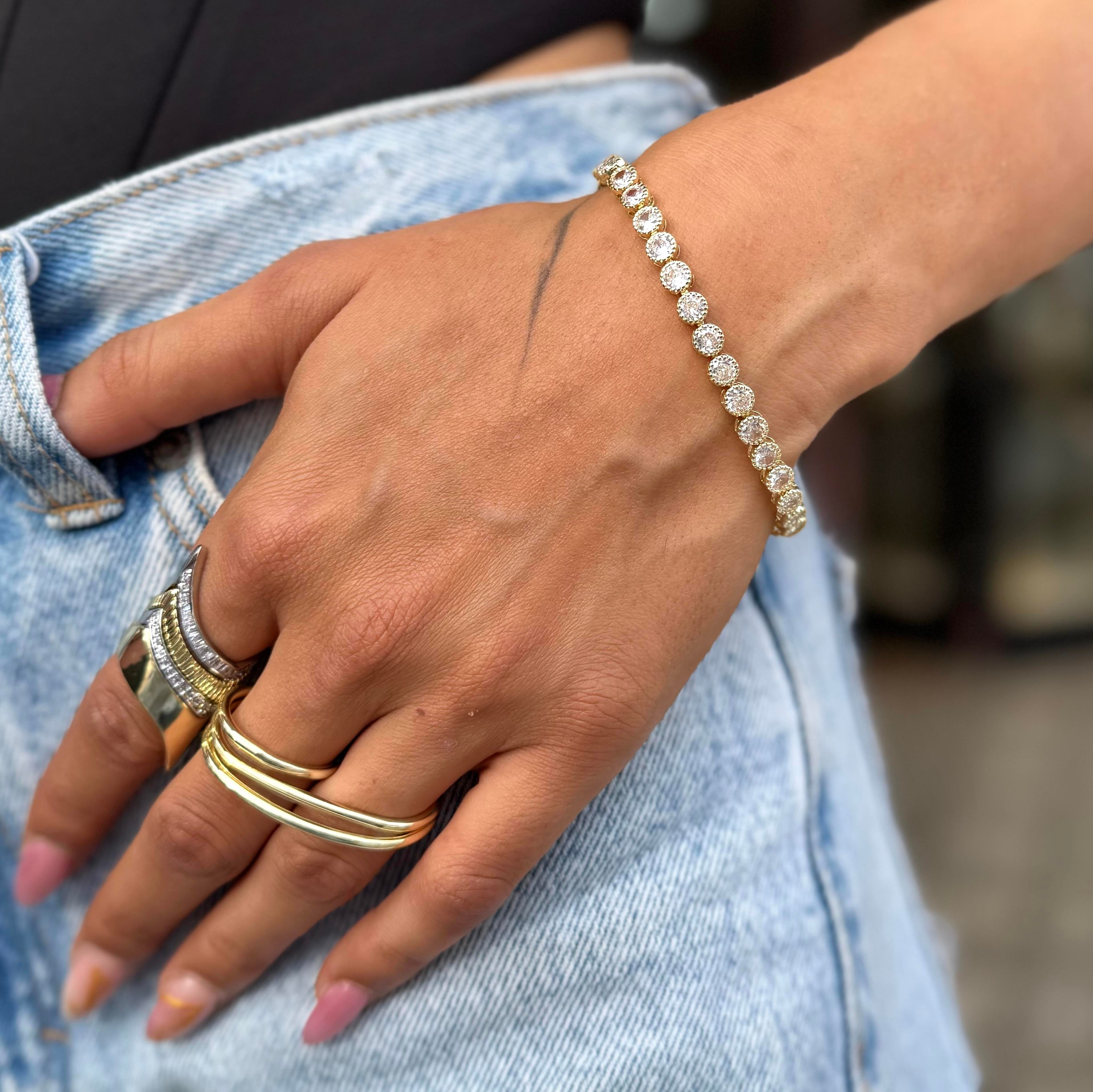 14K Gold Yuvarlak Kesim Su Yolu Bileklik