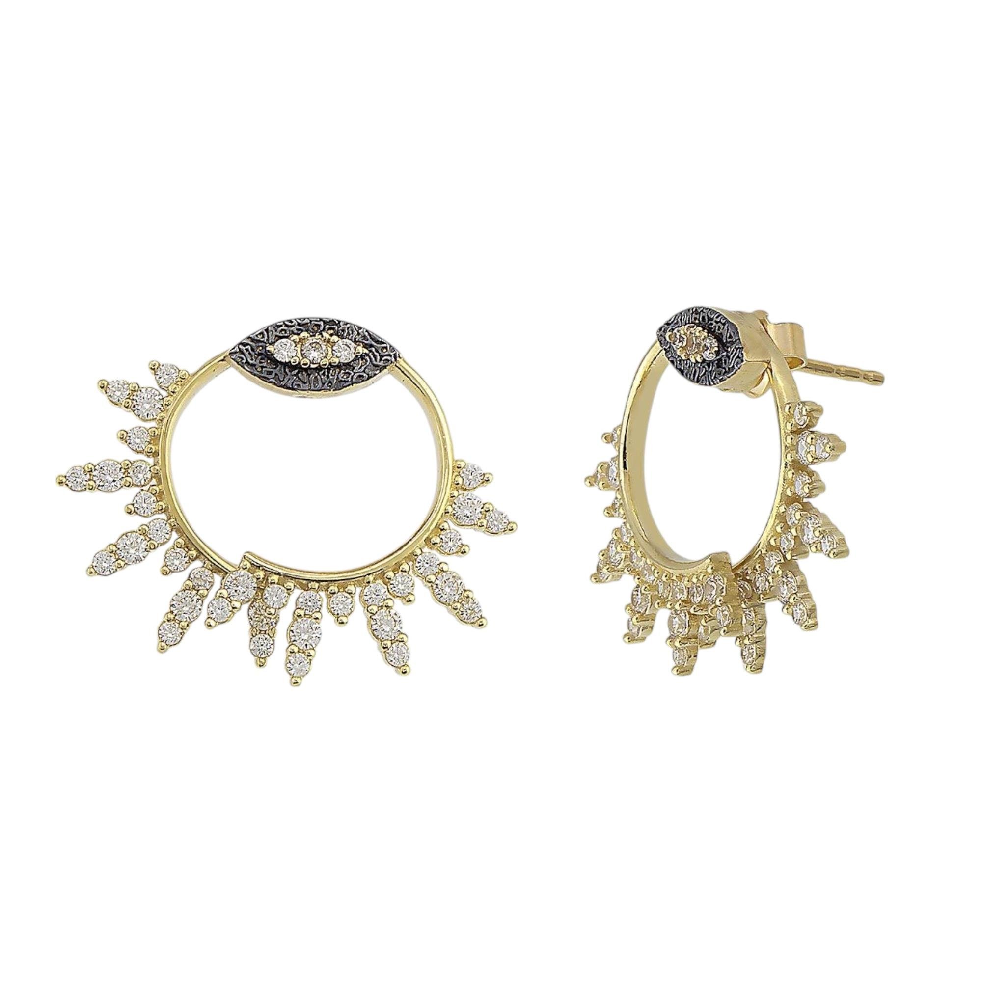 14K Gold Zarif Tasarım Parıltılı Halka Küpe