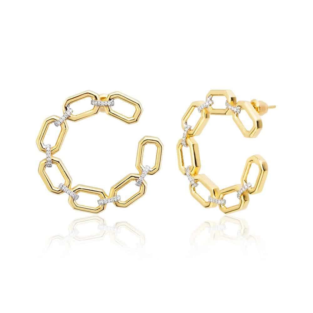 14K Gold Zincir Form Zirkon Taşlı Halka Küpe