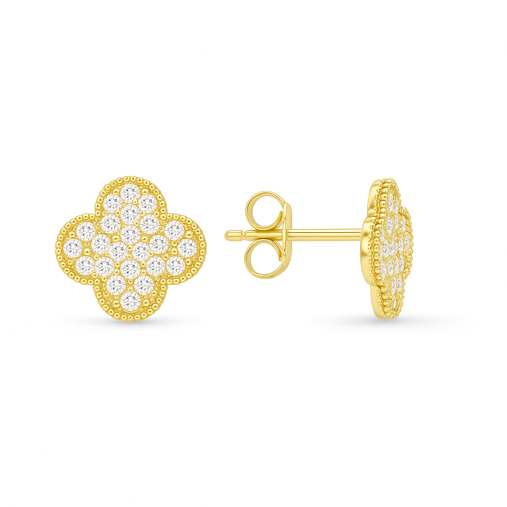 VIP Seri Zirkon Taşlı Yonca Küpe Gold