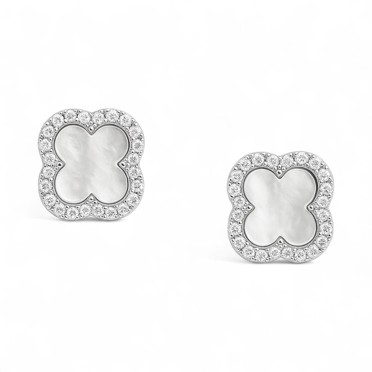 VIP Seri Zirkon ve Sedef Taşlı Yonca Küpe Silver