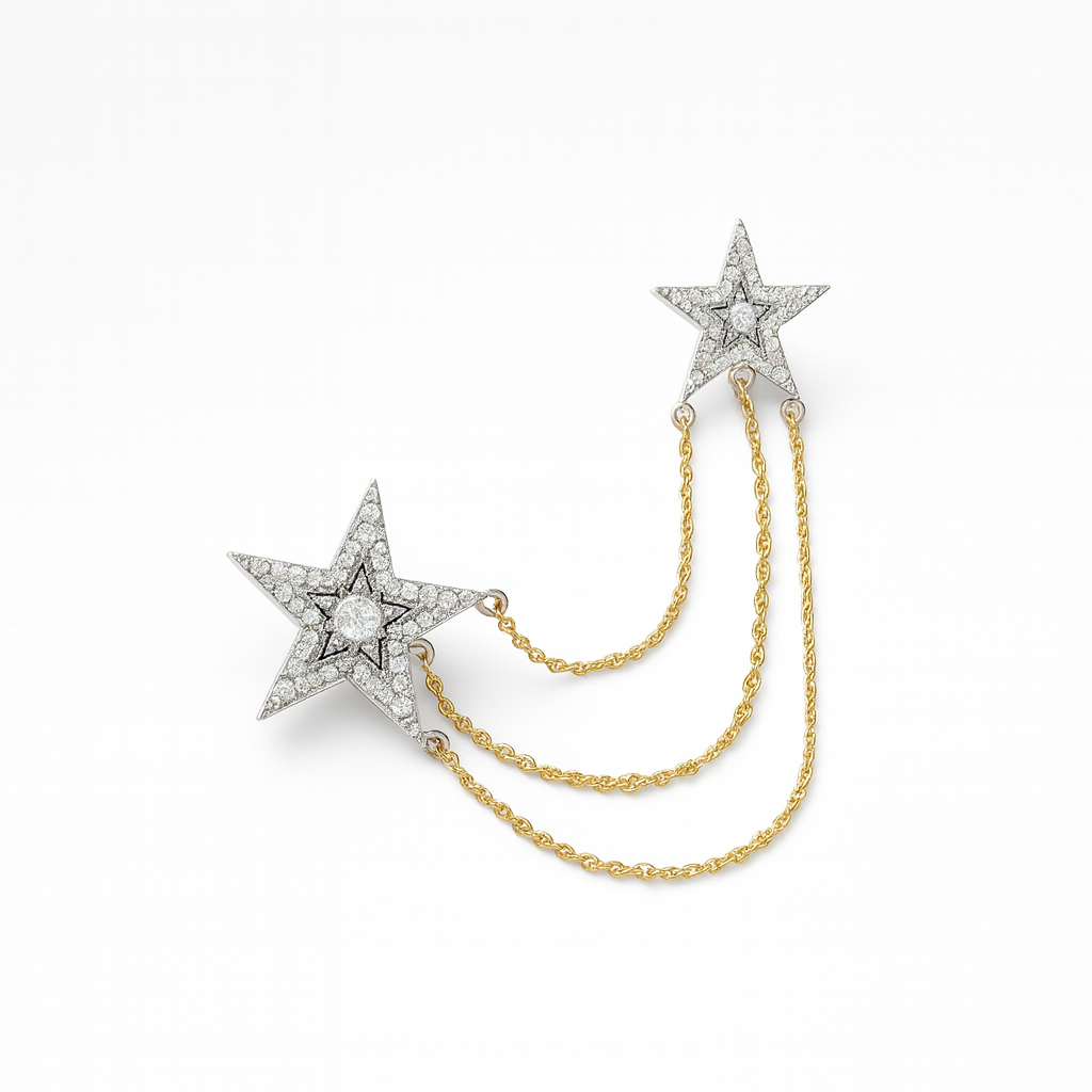 ✨ Parlak taşlarla süslenmiş yıldızlar, gece gökyüzünün büyüsünü tarzınıza taşır.
